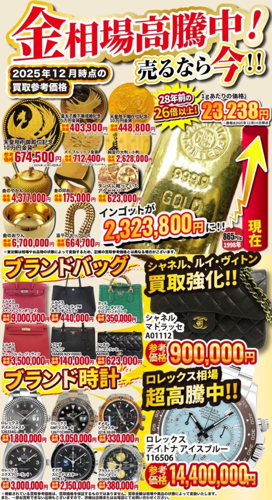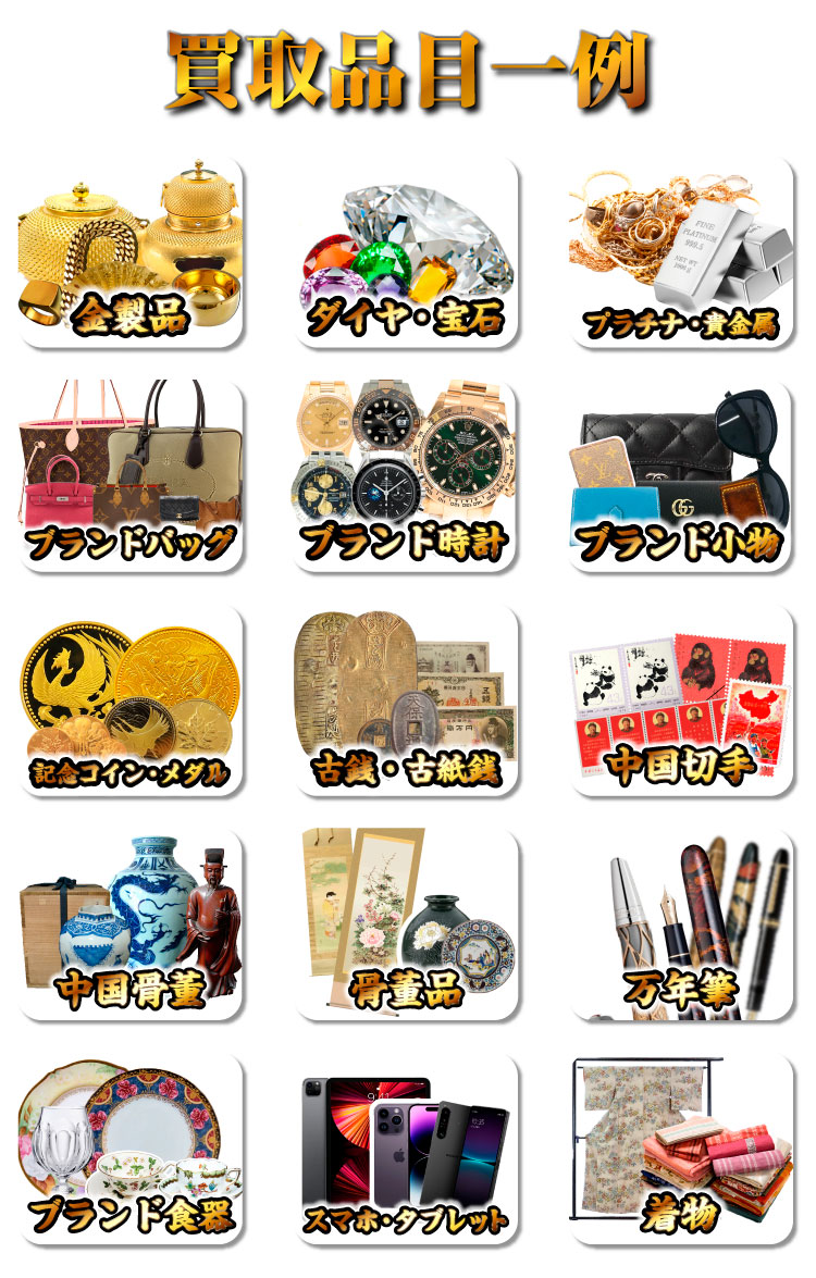 当店では国内だけでなく海外、特に中国への豊富な販売ルートを確保しているため、他社に負けない高価買取を実現しております。